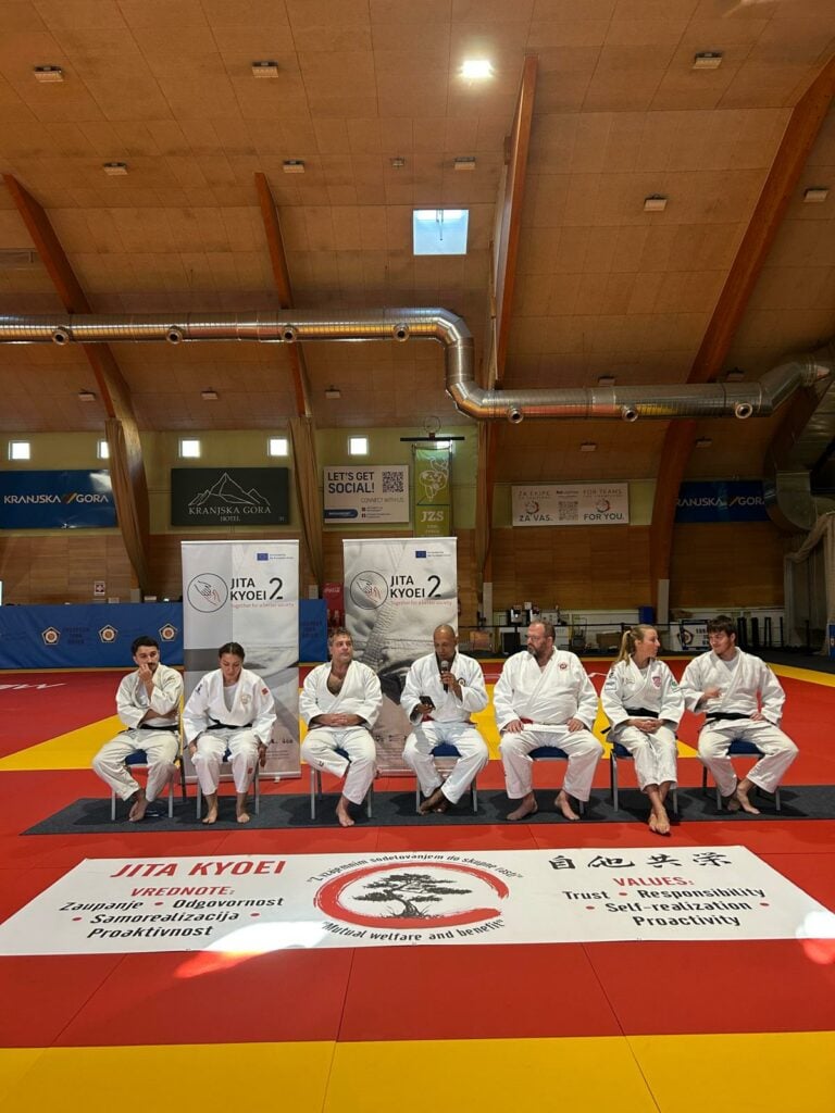 « Le week-end dernier à Kranjska Gora, nous avons eu la conférence finale de Jita Kyoei 2. Nous avons réfléchi au projet, à ce que nous avons accompli ces dernières années et à ce qui nous attend. Nous avons profité de l’occasion pour partager le message avec les jeunes qui assistaient à la Coupe d’Europe Cadet. Le fait que cette conférence soit la dernière ne signifie pas que c’est la fin de l’histoire. En tant que pionniers de ce projet, nous prévoyons de continuer à partager les valeurs et les principes de Jita Kyoei même après la fin officielle. »