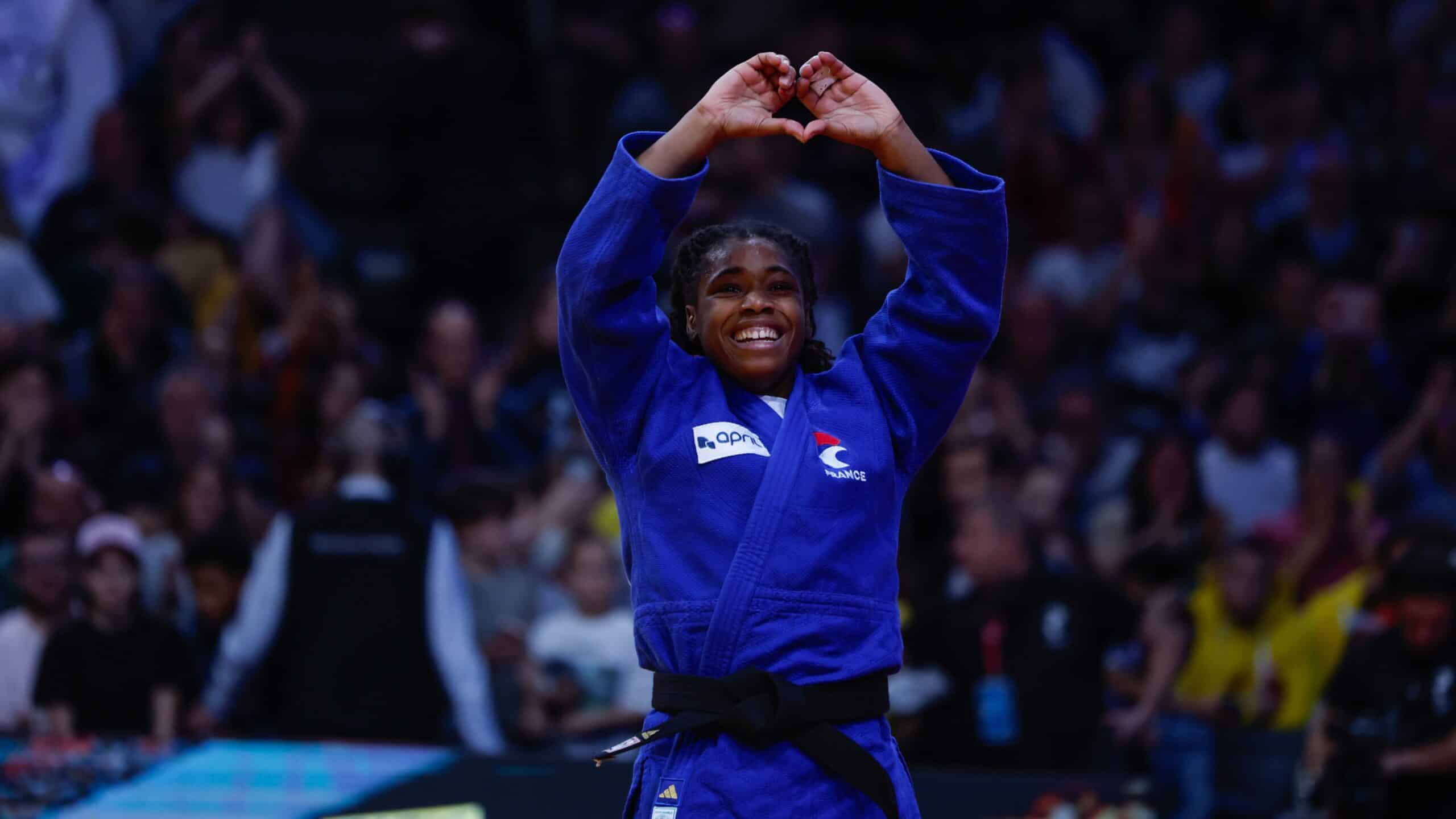 Le moment où Sarah Léonie Cysique (FRA) a remporté son premier or au Grand Slam de Paris.
