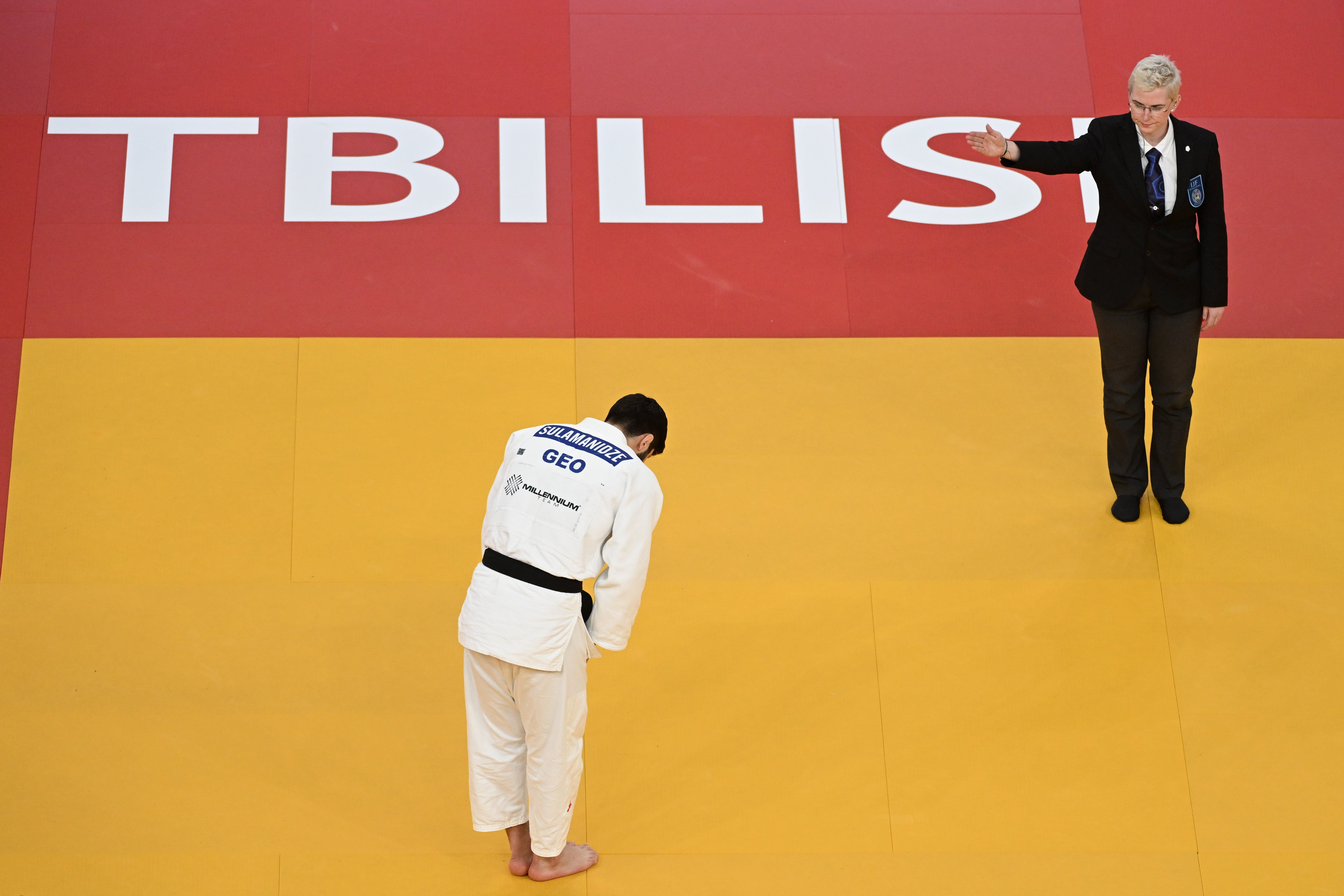 Dans le judo, parmi ses nombreux gestes, la révérence est le symbole du respect. Les judokas s’inclinent avant et après chaque combat, et même les invités distingués s’inclinent devant les athlètes lors de la cérémonie de remise des médailles. © Emanuele Di Feliciantonio